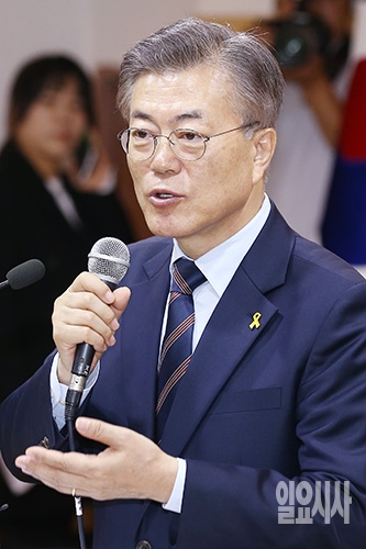 더불어민주당 문재인 대선후보가 21일 오전 서울 용산구 용산 한국여성단체 협의회에서 열린 '모두를 위한 미래, 성평등이 답이다' 대통령 후보 초청 성평등정책 간담회에 참석해 질의응답 시간을 갖고 있다.