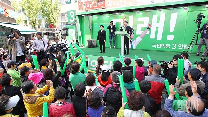 국민의당 안철수 대선후보가 26일 오후 강원도 원주시 문화의 거리에서 열린 집중유세에서 지지를 호소하고 있다.