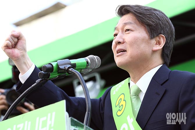 국민의당 안철수 대선후보가 26일 오후 강원도 원주시 문화의 거리에서 열린 집중유세에서 지지를 호소하고 있다.
