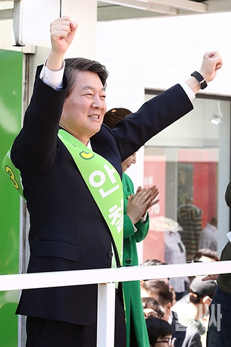 국민의당 안철수 대선후보가 26일 오후 강원도 춘천시 명동거리에서 열린 집중유세에서 지지를 호소하고 있다.