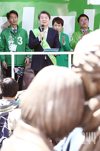 국민의당 안철수 대선후보가 26일 오후 강원도 춘천시 명동거리에서 열린 집중유세에서 지지를 호소하고 있다.