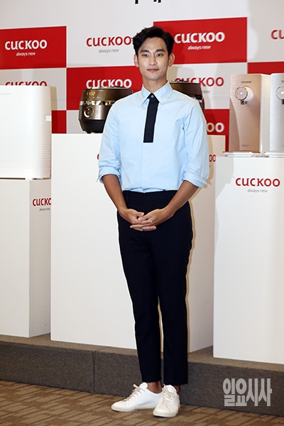 배우 김수현이 22일 오전 서울 중구 한국프레스센터에서 열린 종합건강생활가전기업 쿠쿠전자의 '쿠쿠전자 40주년 기념 IoT 제품' 론칭 행사에 참석해 포토타임을 갖고 있다.