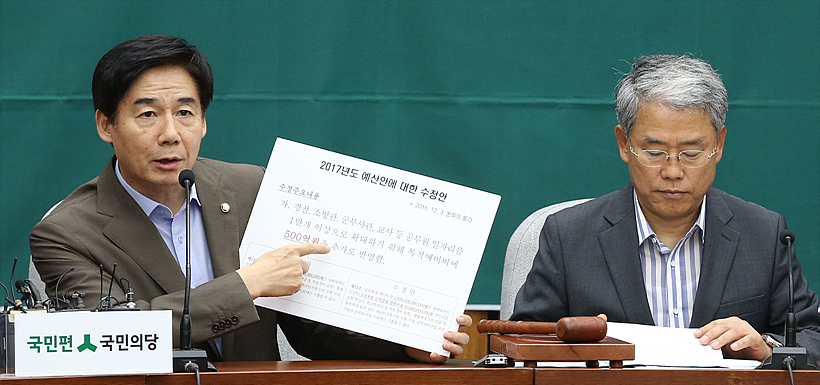 이용호 국민의당 정책위의장이 18일, 서울 여의도 국회서 열린 의원총회 도중 예산안 수정안에 대해 발언하고 있다.