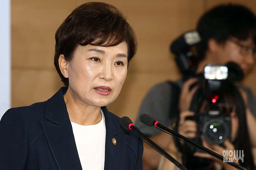 김현미 국토교통부장관이 2일 오후 서울 종로구 정부서울청사에서 열린 '주택시장 안정화 방안 브리핑'에 참석해 부동산 대책을 발표하고 있다.