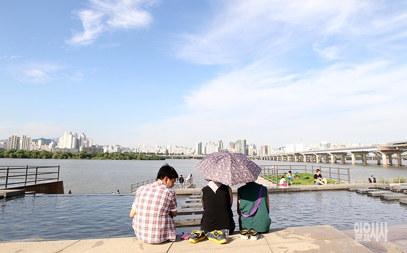 서울을 포함한 수도권 전역에 폭염경보가 발효중인 가운데 3일 오후 서울 여의도 한강공원 물빛광장에서 시민들이 휴식을 취하고 있다.