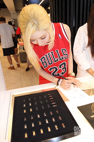 DJ소다가 4일 오전 서울 마포구 조던 브랜드 콘셉트 매장 '조던홍대' 오픈 행사에서 신발 주문을 하고 있다.
