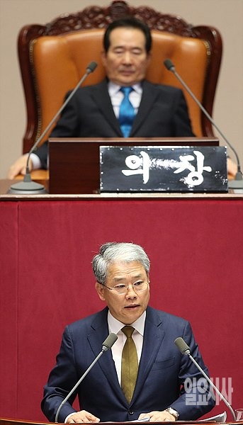 김동철 국민의당 원내대표가 6일, 서울 여의도 국회 본회의장서 교섭단체 대표연설을 하고 있다.