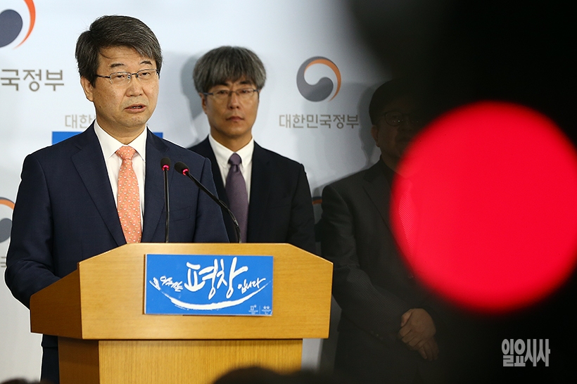 신고리 5·6호기 공론화위원회 김지형 위원장이 20일 오전 서울 종로구 정부서울청사에서 신고리원전 5·6호기 공론조사 최종 권고안 발표를 하고 있다. 공론화위원회는 건설 재개 쪽을 선택한 비율이 59.5%, 건설 중단을 선택한 40.5%로 신고리 5·6호기 건설 재개를 정부에 권고한다고 밝혔다.