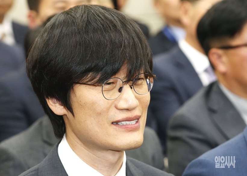 이해진 전 네이버 의장이 30일, 서울 여의도 국회서 열린 과학기술정보통신위원회 국정감사에 출석해 의원들의 질의에 잠시 웃고 있다.