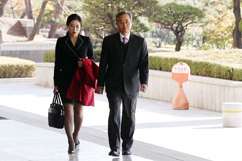 추명호 전 국정원 국익정보국장이 31일 오전 국가정보원의 MBC 장악 의혹 등과 관련 조사를 받기 위해 서울 서초구 서울중앙지검에 피의자 신분으로 출석하고 있다.