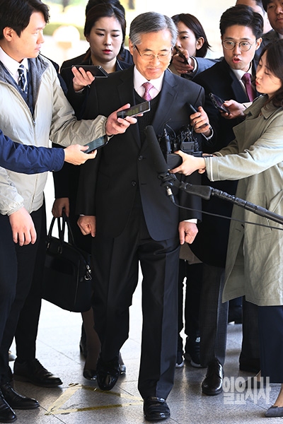 추명호 전 국정원 국익정보국장이 31일 오전 국가정보원의 MBC 장악 의혹 등과 관련 조사를 받기 위해 서울 서초구 서울중앙지검에 피의자 신분으로 출석하고 있다.