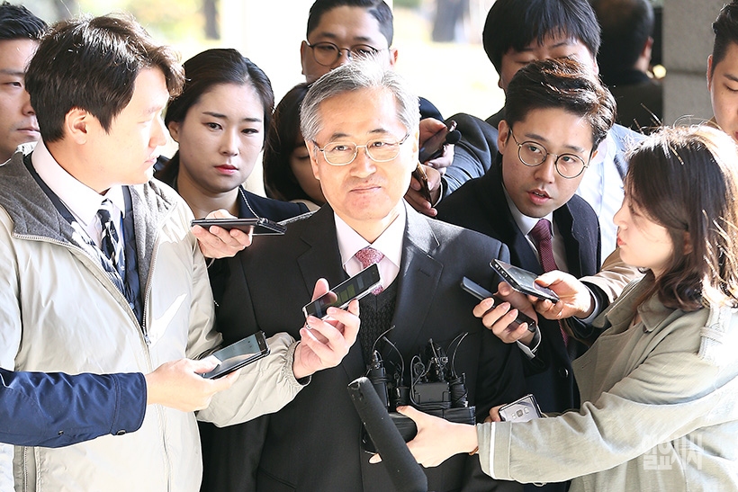 추명호 전 국정원 국익정보국장이 31일 오전 국가정보원의 MBC 장악 의혹 등과 관련 조사를 받기 위해 서울 서초구 서울중앙지검에 피의자 신분으로 출석하고 있다.