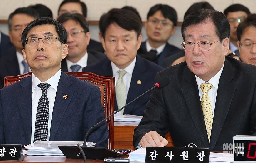 박상기 법무부장관이 31일, 서울 여의도 국회 법제사법위원회 회의실서 속개된 법무부 등에 대한 국정감사에 출석해 잠시 허공을 바라보고 있다.
