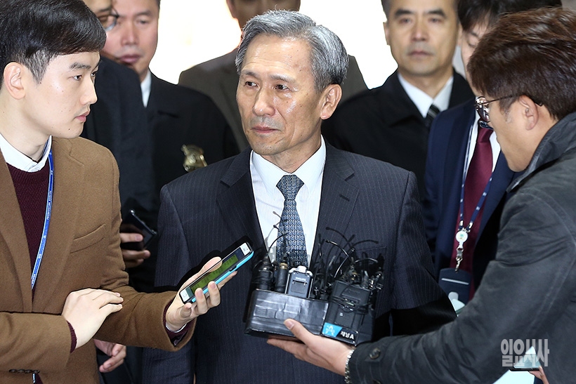 군 사이버사령부 댓글 공작에 관여한 의혹을 받고 있는 김관진 전 국방부장관이 10일 오전 서울 서초구 서울중앙지방법원에 영장실질심사을 받기 위해 출석하고 있다.