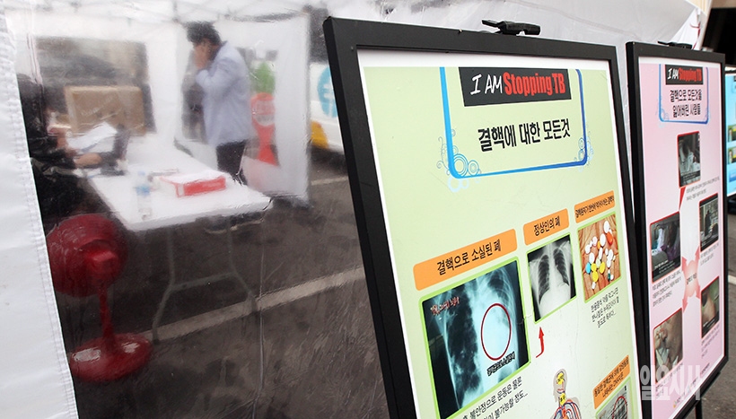 23일 오후 서울 동작구 동작구청 주차장에서 질병관리본부 관계자들이 결핵 확산 예방을 위한 노량진 학원가 4만명 대상 결핵 검진을 진행하고 있다.