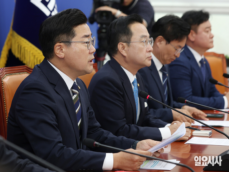 더불어민주당 박찬대 당대표 직무대행 겸 원내대표가 8일 오전 서울 여의도 국회에서 열린 취임 100일 기자간담회에 참석하고 있다.