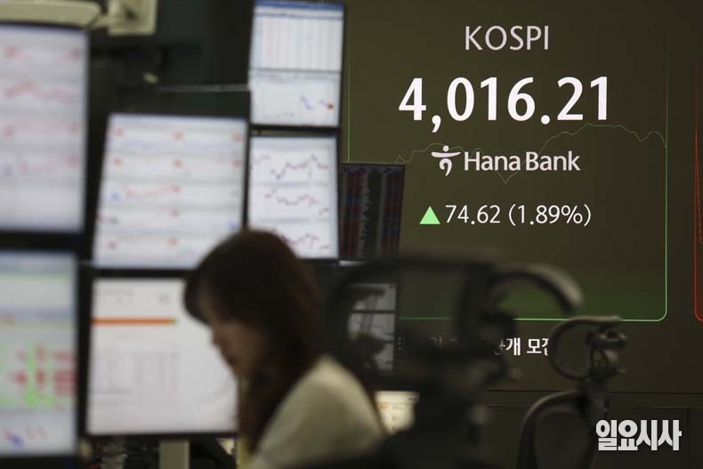 이날 한국국래소에 따르면 오전 9시 11분 기준 코스피는 전장보다 74.29포인트(1.88%) 오른 4015.88이다.