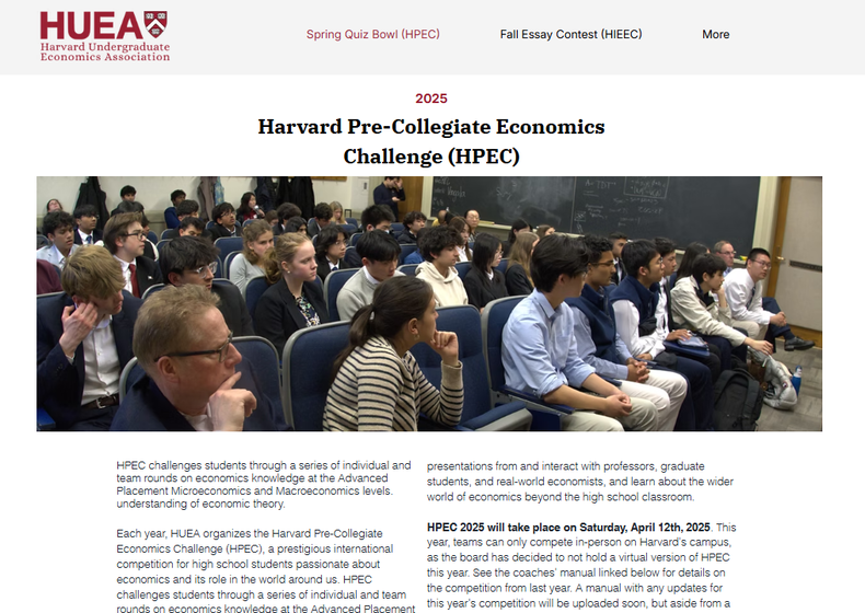 하버드 경제학 챌린지는 하버드대학교가 매년 세계 각국의 예비 대학생들을 대상으로 주최하는 국제 경제학 대회로, 미시·거시경제 문제 해결 능력, 분석력, 경제적 사고력, 협업 능력을 종합적으로 평가하는 것으로 유명하다.