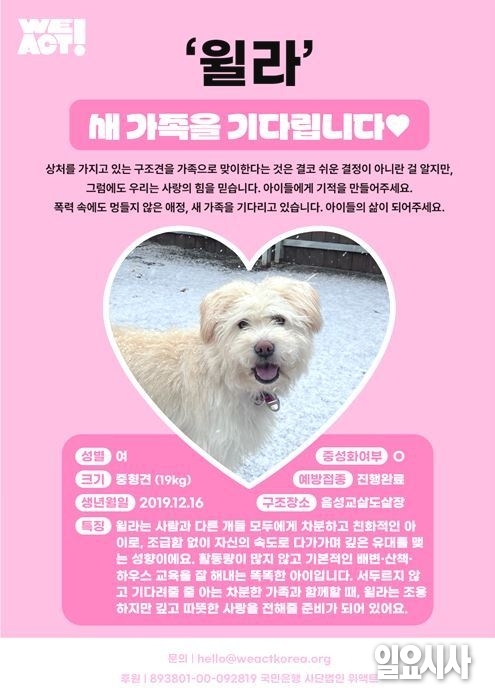 상처를 가지고 있는 구조견을 가족으로 맞이한다는 것은 결코 쉬운 결정이 아니란 걸 알지만, 그럼에도 우리는 사랑의 힘을 믿습니다. 아이들에게 기적을 만들어주세요.