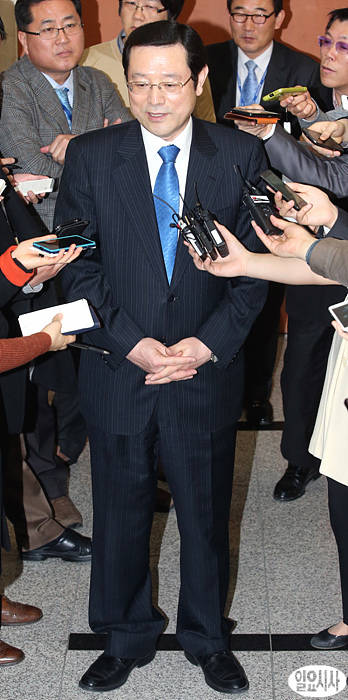 민주통합당 정책위의장을 지낸 이용섭 의원이 오는 5월4일 열리는 전당대회에서 당 대표 경선에 출마하겠다고 공식 선언한 뒤 기자들의 질문에 답변하고 있다.