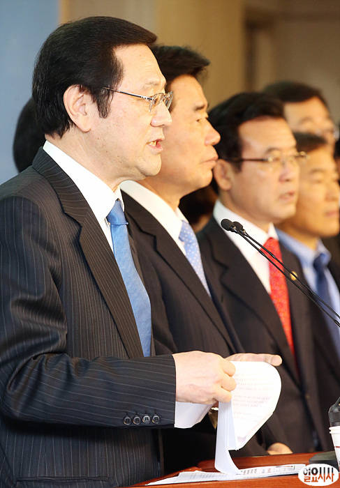 민주통합당 정책위의장을 지낸 이용섭 의원이 5일 오전, 국회 정론관에서 오는 5월4일 열리는 전당대회 출마를 공식 선언하는 기자회견을 열고 있다.
