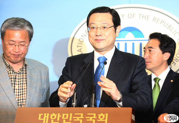 민주통합당 정책위의장을 지낸 이용섭 의원이 5일 오전, 국회 정론관에서 오는 5월4일 열리는 전당대회 출마를 공식 선언하는 기자회견을 열고 있다.