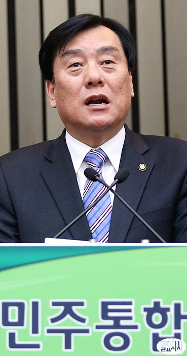 5일 오전 민주통합당 의원총회가 열린 서울 여의도 국회 246호실에서 박기춘 원내대표가 발언하고 있다.