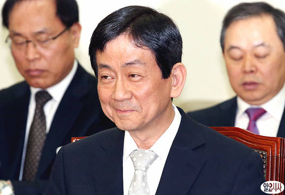 진영 보건복지부 장관 내정자가 6일 오전, 서울 여의도 국회에서 열린 인사청문회에 도중 웃음을 지어 보이고 있다.