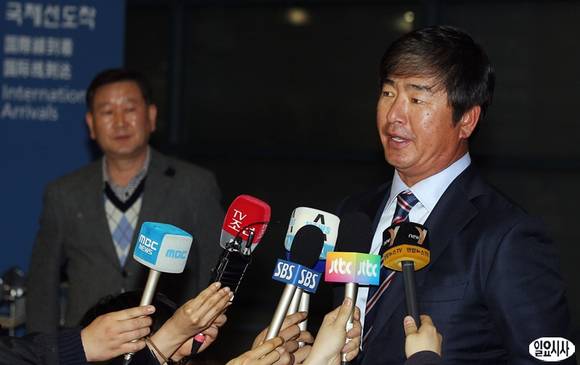 2013 월드베이스볼클래식(WBC) 2라운드 진출에 실패한 한국 야구대표팀 류중일 감독이 6일 오후 인천국제공항을 통해 귀국, 취재진의 질문에 답하고 있다.
