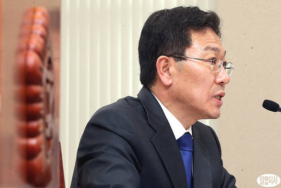 윤상직 산업통상자원부 장관 내정자가 7일, 국회에서 열린 지식경제위원회 인사청문회에서 인사청문위원들의 질의에 아주 진지한 표정으로 답변하고 있다.