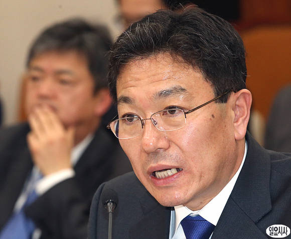 윤상직 산업통상자원부 장관 내정자가 7일, 국회에서 열린 지식경제위원회 인사청문회에서 인사청문위원들의 질의에 답변하고 있다.