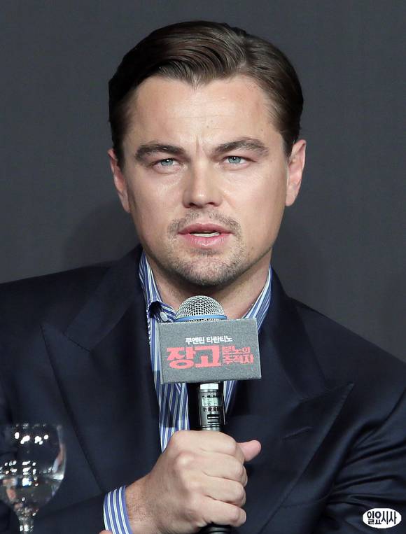 레오나르도 디카프리오가 7일 오후 서울 강남구 리츠 칼튼 호텔에서 열린 영화 '장고:분노의 추적자' 공식 기자회견에서 취재진의 질문에 답하고 있다.