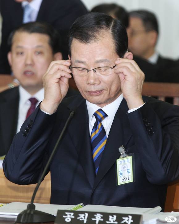 김병관 국방부 장관 후보자가 8일 오전 서울 여의도 국회 국방위원회 전체회의실에서 열린 인사청문회에 참석해 안경을 쓰고 있다.
