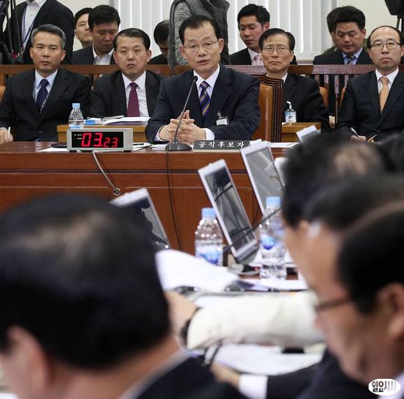 김병관 국방부 장관 후보자가 8일 오전 서울 여의도 국회 국방위원회 전체회의실에서 열린 인사청문회에서 의원들의 질문에 답하고 있다.
