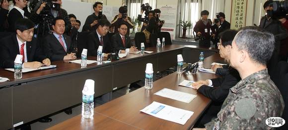 8일 오후 국회 새누리당 정책위의장실에서 '유엔 대북제재결의 및 북한의 대남위협동향 관련 실무당정협의'가 열리고 있다. 이날 당정협의에는 이병석 국회 부의장과 정문헌 정책위부의장과 국회 외교통상통일위원회 및 국방위원회 소속 의원 등 새누리당 의원들과 박선우 합참 작전본부장, 이용걸 국방부 차관, 김성한 외교통상부 제2차관, 김천식 통일부 차관 등이 참석했다.