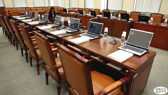 [포토] 이러고도 일하는 국회? 텅빈 국방위원회실