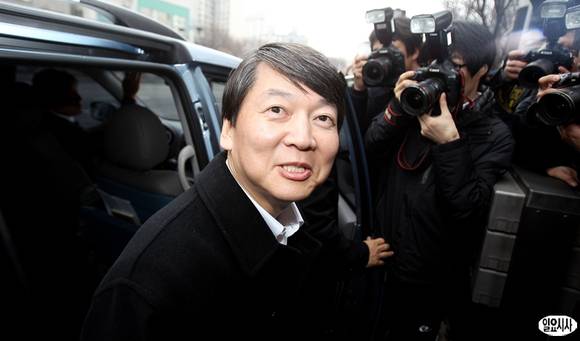 서울 노원병 국회의원 출마의사를 밝힌 안철수 전 서울대 교수가 12일 오후 서울 노원구 상계1동 주민센터에서 전입신고를 마친 뒤 차량에 탑승하고 있다.