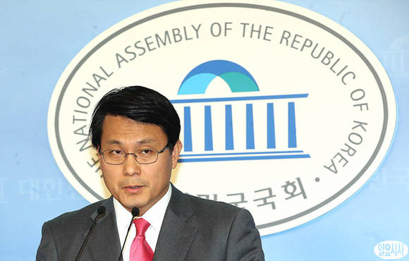 국회 정보위원회 소속 윤상현 새누리당 간사가 12일 오후 서울 여의도 국회 정론관에서 남재준 국정원장 내정자 인사청문회완 관련해 브리핑을 갖고 있다.