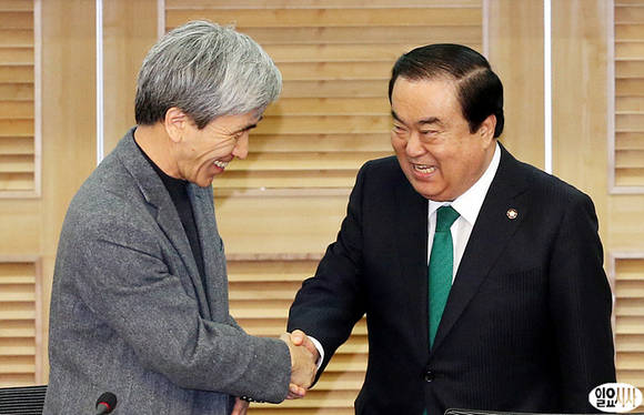 [포토] '악수가 제일 쉬웠어요' 정해구-문희상