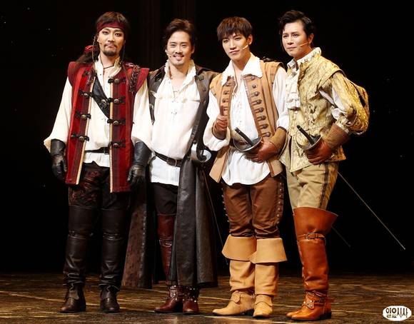 14일 오후 서울 중구 충무아트홀 대극장에서 진행된 뮤지컬 '삼총사' 프레스콜에서 출연배우들이 포토타임을 갖고 있다. (왼쪽부터 조순창, 남경주, 준케이, 김민종)
