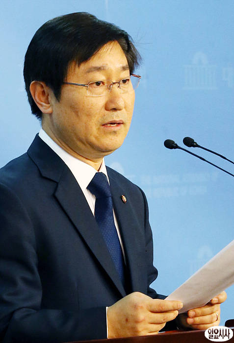 박범계 민주통합당 의원이 14일 오후, 서울 여의도 국회 정론관에서 NLL 항고 이유서 접수와 관련, 기자회견을 열고 있다.