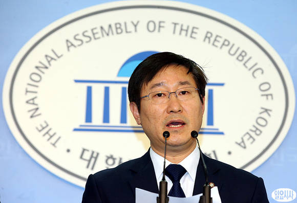 박범계 민주통합당 의원이 14일 오후, 서울 여의도 국회 정론관에서 NLL 항고 이유서 접수와 관련, 기자회견을 열고 있다.