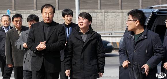 4ㆍ24 재보선 노원병 지역 출마를 선언한 안철수 전 서울대 교수가 15일 오전 서울 노원구 상계동 개인택시노조 노원지부에 간담회를 갖기 위해 방문하고 있다.