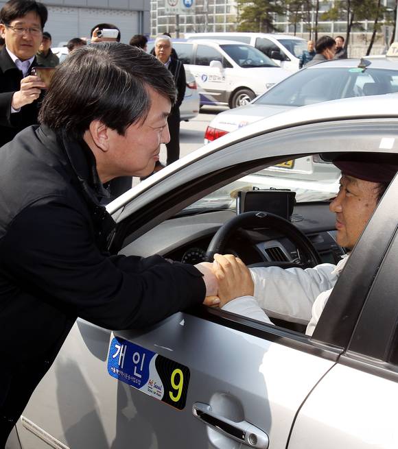 [포토] 택시기사와 악수하는 안철수 예비후보