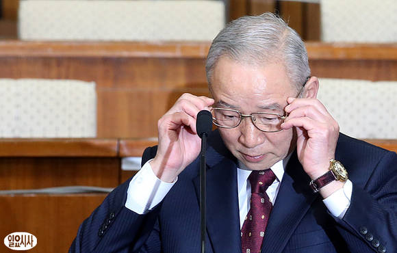 남재준 국정원장 후보자가 18일 오전, 서울 여의도 국회에서 열린 인사청문회에 출석해 의원들 질의 도중 안경을 고쳐쓰고 있다.