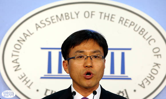 19일 오전, 통합진보당 정태흥 서울시당위원장이 서울 여의도 국회 정론관에서 노원병 재보궐선거 출마를 선언하고 있다.