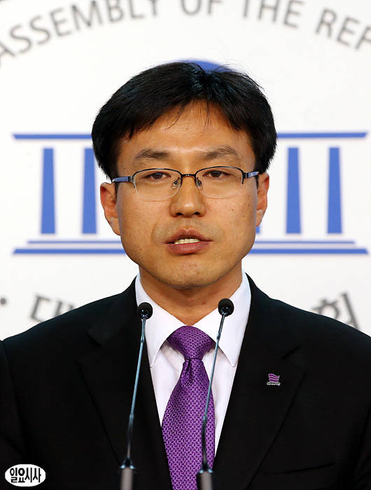 19일 오전, 통합진보당 정태흥 서울시당위원장이 서울 여의도 국회 정론관에서 노원병 재보궐선거 출마를 선언하고 있다.