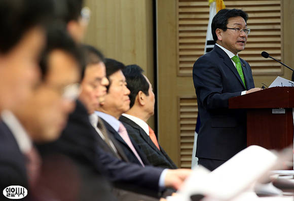 강기정 민주통합당 의원이 20일 오후, 서울 여의도 국회 의원회관 세미나실에서 5·4 전당대회 당대표 후보 출마를 선언하고 있다.