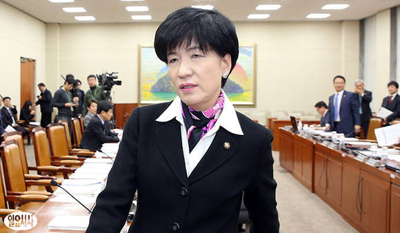 20일, 민주통합당 김영주 정무위원회 간사가 불쾌한 표정을 짓고 있다.