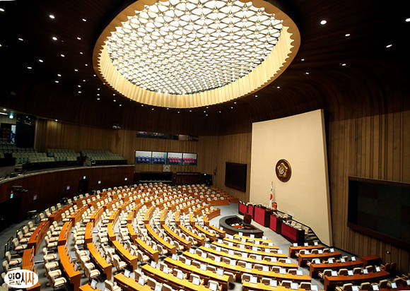 여야가 21일 오후, 정부조직법 개정안 등 관련 법안들을 통과시킬 예정이었지만 합의문에 대한 해석차를 좁히지 못해 난항을 겪고 있는 가운데, 국회 본회의장 안이 텅텅 비어 있다.